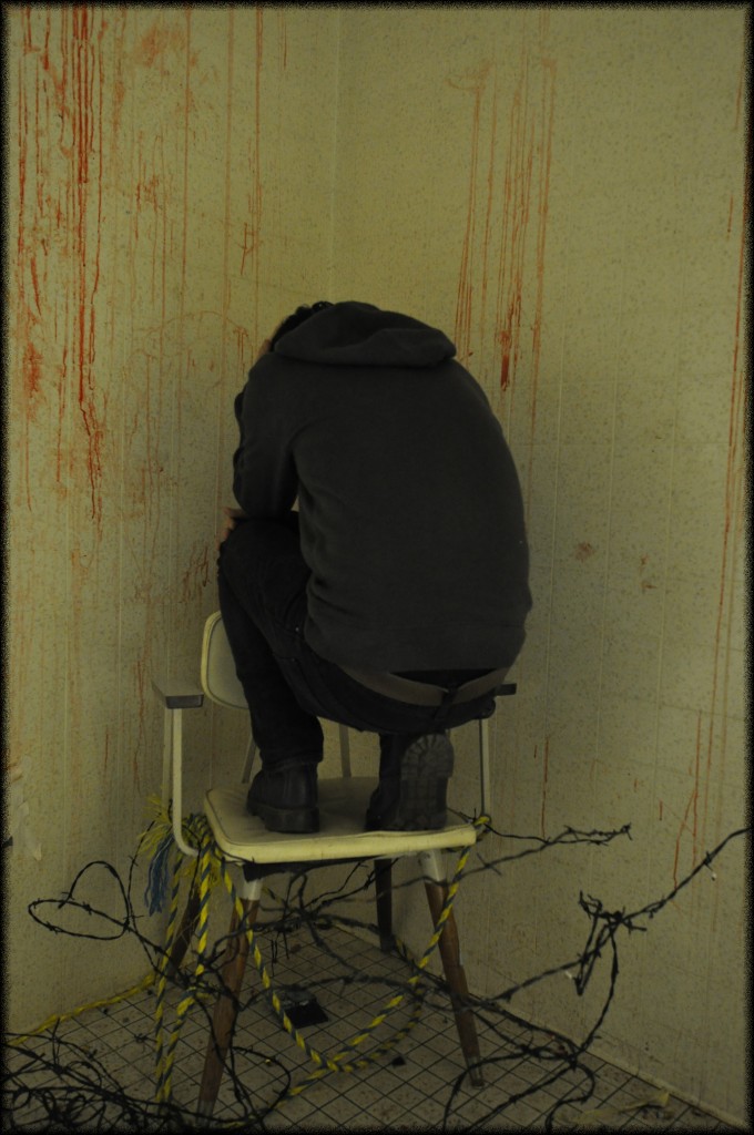 The building was apparently being used for urban warfare training. The idea is to create places that emulate different urban environments to train for hostile situations in those environments. Some places, like this room above, clearly had staged scenes with fake blood. In other places, it was not as clear whether the scene was “staged”.