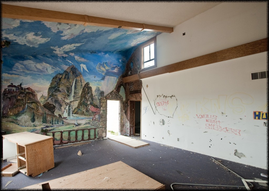 I stepped into the church and found myself in a silent room that had one wall painted and others covered in banal graffiti. As I stood there, I came to realize how much different this exploration felt than those I had been undertaking in Europe. It was so much lonelier. Part of this, of course, can be chalked up to the fact that I was indeed alone, but there was also a spatial dimension. It seems to me that perhaps because of the availability of space here in the desert, it is much easier to simply walk away from a place. And when that happens, an essence of loneliness particular to this dusty landscape seeps in. It is a loneliness, a sadness, so deep that even destruction of the place does nothing to erase it.