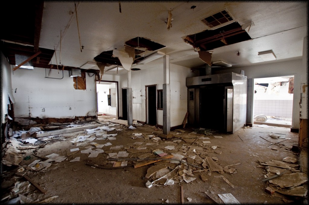I went on to explore the kitchens, mess hall, work corridors, carpentry shop, the fire station, basketball court and finally the “vehicular component factory”, whatever the fuck that means. It had been almost completely stripped out, every window broken, and despite the emptiness of the place, it continued to have a particular thickness to it. It was a place full of sad memories, left to rot our here 50 miles from the nearest city where the incarcerated inhabitants could do no harm.