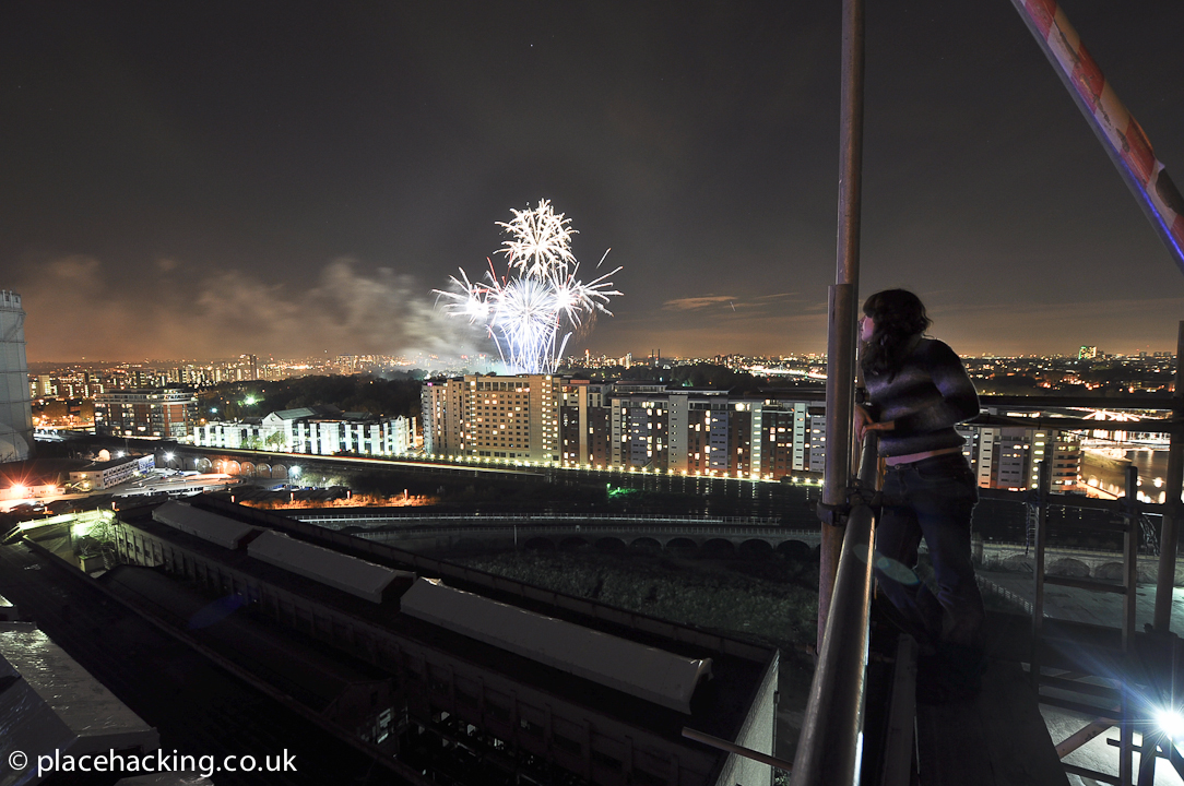While Battersea Power Station has been a site of serial trespass for years, this year’s epic 7-person infiltration in the middle of an event setup on bonfire night past hordes of workers deserves special recognition. Watching the Battersea Park fireworks display from one of the chimneys was incredibly surreal, especially when Silent Motion told me “close your eyes and you can feel the chimneys collapsing a little every time a burst explodes.”