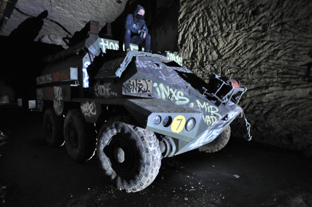 Sometime in the spring, we rolled into a quiet village in this Paris suburb at 2am and killed the headlights while we looked for a place to park the car where it wouldn’t be noticed. It was quiet enough to hear the gravel crunch under our feet as we ran up to a blast door and slipped down a dusty ventilation shaft. Inside – a massive quarry system converted into a NATO headquarters bunker full of decommissioned military equipment brought in by strange enthusiasts. The only thing more fun than taking photographs in these rigs? Playing destruction derby in them. Just kidding. Sort of.
