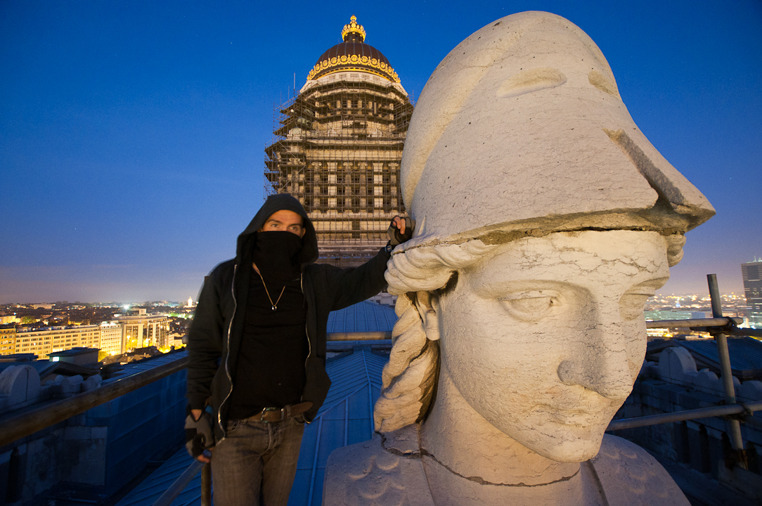The Brussels Palais de Justice was the largest building in the world when it was finished in 1883 and opened by King Leopold II. It’s rumoured that it’s construction was such an undertaking that the architect, Joseph Poelaert, died from exhaustion. So when we heard it was covered in scaffolding, well, we knew we were going to climb it. 2/3 of the way up the scaff, Statler quit and by the time I pulled myself onto the dome, I thought I was going to die.