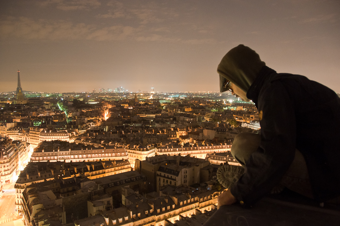 Later, this crusty old hippie came up the scaffolding with his 6-year-old daughter and fired up a spliff as he introduced himself. Like I said, only in Paris.